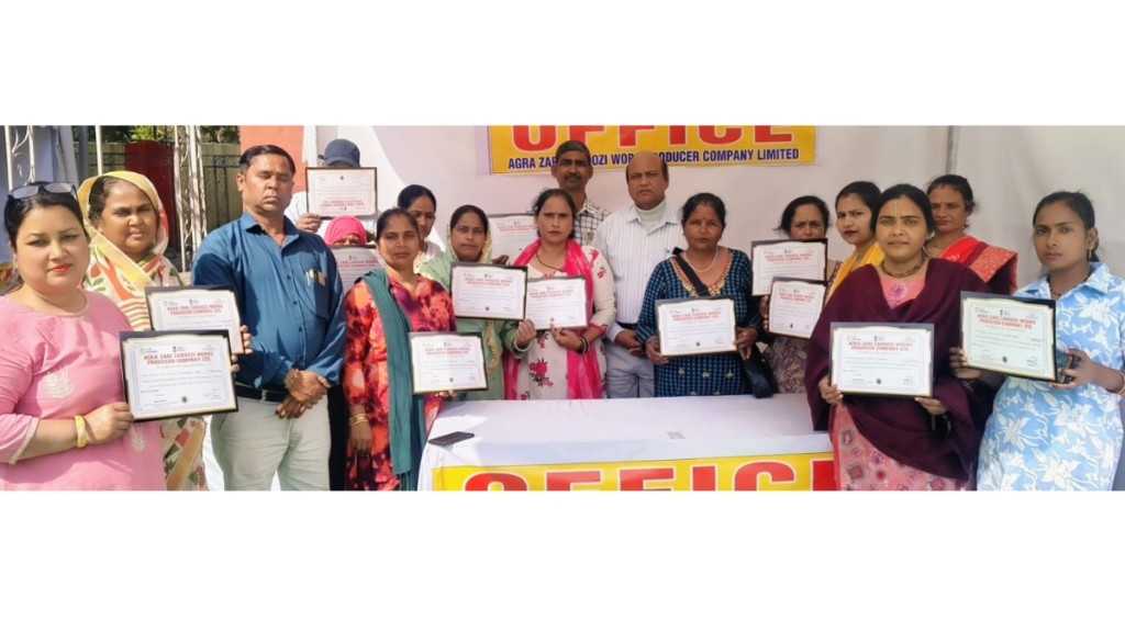 आगरा। वस्त्र मंत्रालय, भारत सरकार की सहायता से आगरा जरी जरदोजी वर्क प्रोड्यूसर कंपनी लिमिटेड द्वारा संजय प्लेस स्थित रोज विला गार्डन में आयोजित 10 दिवसीय हस्तशिल्प प्रदर्शनी के समापन पर सम्मान समारोह आयोजित किया गया।