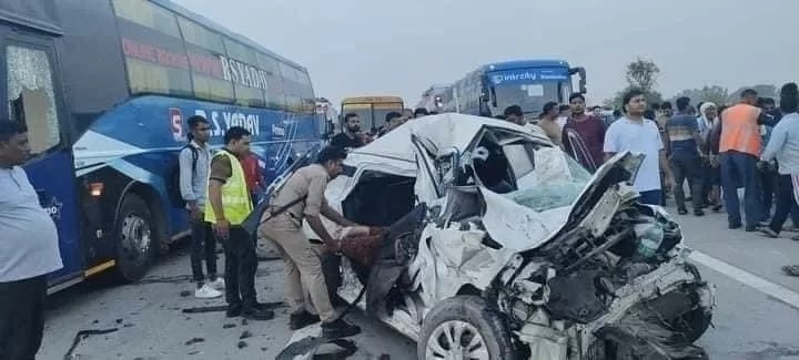 उत्तर प्रदेश के अलीगढ़ जिले में टप्पल के पास आगरा-नोएडा यमुना एक्सप्रेसवे पर सोमवार सुबह बड़ा हादसा हुआ। जिसमें एक महिला समेत 4 लोगों की दर्दनाक मौत हो गई। दरअसल, एक्सप्रेस-वे पर हादसे के बाद एक कार में 3 लोग फंस गए थे। इसी दौरान 4 युवक उन्हें गाड़ी से निकालने लगे। तभी पीछे से आ रही वोल्वो बस ने सभी को रौंद दिया। हादसे में तीन युवक और गाड़ी में फंसी एक महिला की मौत हो गई।