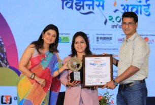 Right to Left Archee Gangan Sathe,Secretary Parag Prathisthan, Dr Ashok Manjrekar,President Parag Prathisthan, Dr Neena Sawant,,President IPSWZB, Dr Manoj Bhatawdekar, Psychiatrist and Guest of Honour Dr Amol Deshmukh, Winner, Chinmay Sume