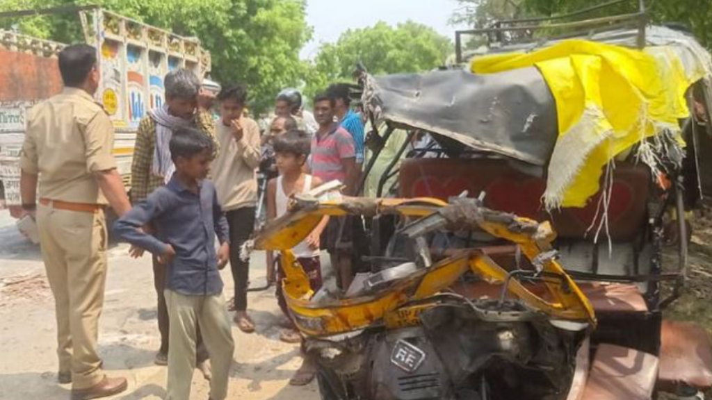 बहराइच। उत्तर प्रदेश के बहराइच में मंगलवार को एक दर्दनाक हादसा हुआ। यहां पर एक तेज रफ्तार बस ने ऑटो में जोरदार टक्कर मार दी। हादसे में एक ही परिवार के छह लोगों की मौत हो गयी, जबकि आठ से अधिक लोग गंभीर रूप से घायल हैं। वहीं, घटना की सूचना मिलने के बाद मौके पर पहुंची पुलिस ने घायलों को उपचार के लिए अस्पताल में भर्ती कराया।