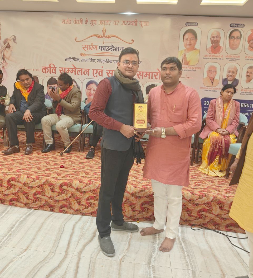 शायर दीपांशु शम्स को सारंग युवा सम्मान-2026 और अन्य 12 कवि-साहित्यकारों का सम्मान दरअसल उस भविष्य का स्वागत है, जिसमें कविता डरती नहीं, बोलती है। मंच पर एक से बढ़कर एक स्वर—देशभक्ति, व्यंग्य, करुणा, प्रेम और चेतना—सबने मिलकर यह कहा कि जिस समाज में कवि जागता है, वहाँ पतन नहीं होता।