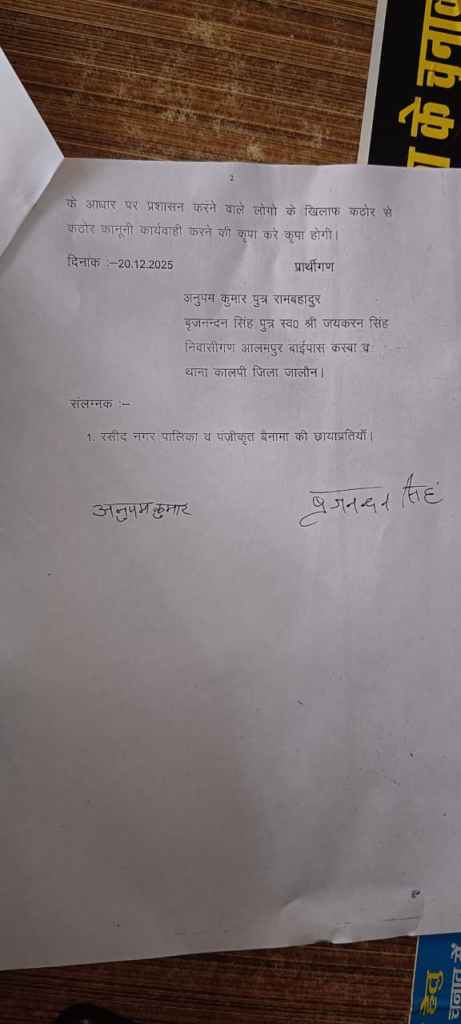 पीड़ित पक्ष द्वारा दी गई लिखित शिकायत के अनुसार, कालपी कस्बे के आलमपुर बाईपास क्षेत्र में उन्होंने 13 नवंबर और 21 नवंबर 2025 को विधिवत पंजीकृत बैनामे के माध्यम से भूमि क्रय की थी।
