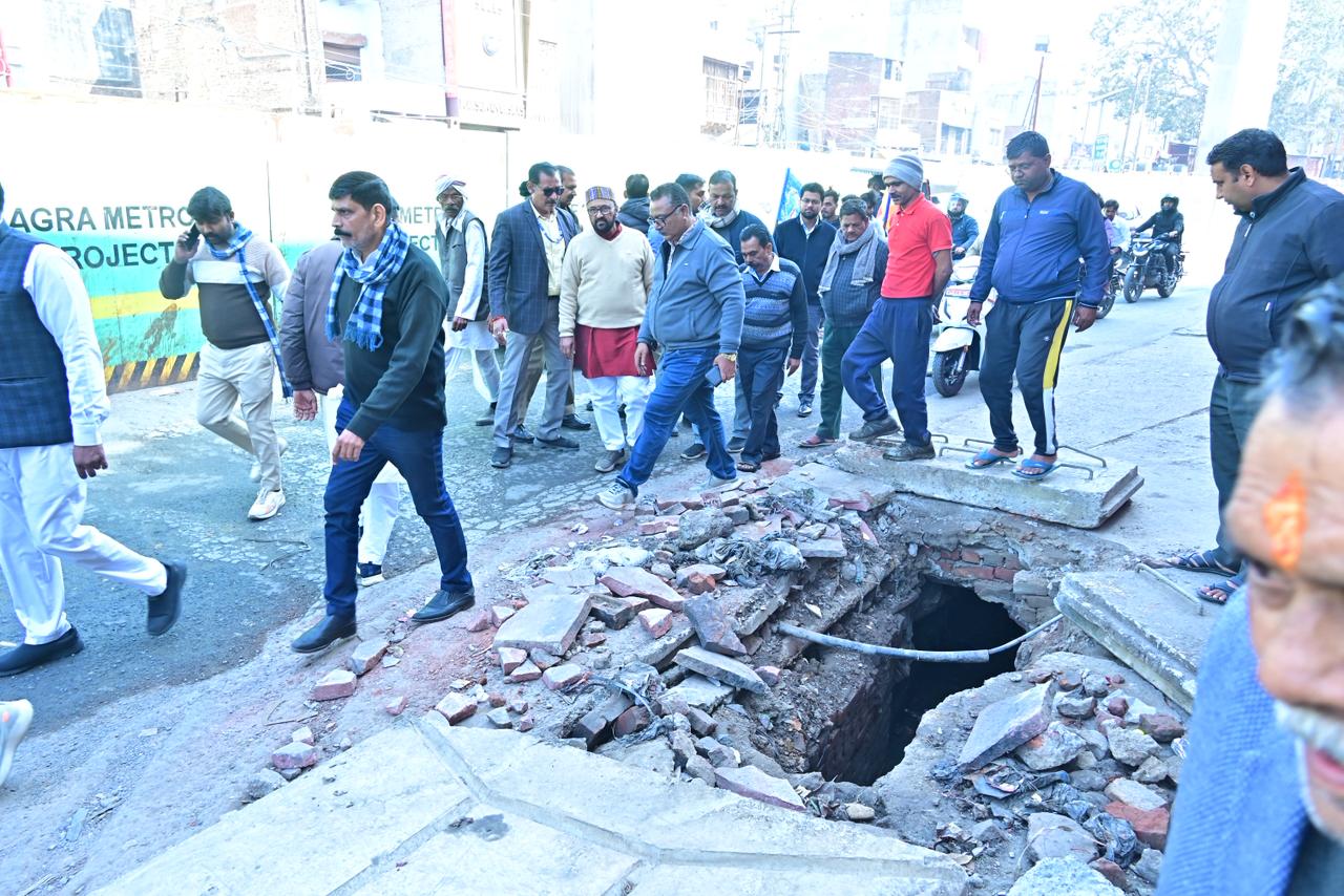 आगरा: ताजनगरी के हृदय स्थल एमजी रोड और धाकरान चौराहे पर लंबे समय से चली आ रही जलभराव की समस्या का अब स्थाई समाधान होने जा रहा है। कैबिनेट मंत्री योगेंद्र उपाध्याय ने क्षेत्रीय जनता की शिकायतों का संज्ञान लेते हुए रविवार को नगर निगम के इंजीनियरों के साथ धाकरान चौराहे और पथवारी मंदिर क्षेत्र का स्थलीय निरीक्षण किया। उन्होंने साफ लहजे में कहा कि अब पुराने ढर्रे पर नहीं, बल्कि नई टेक्नोलॉजी के इस्तेमाल से जनता को राहत दी जाएगी।