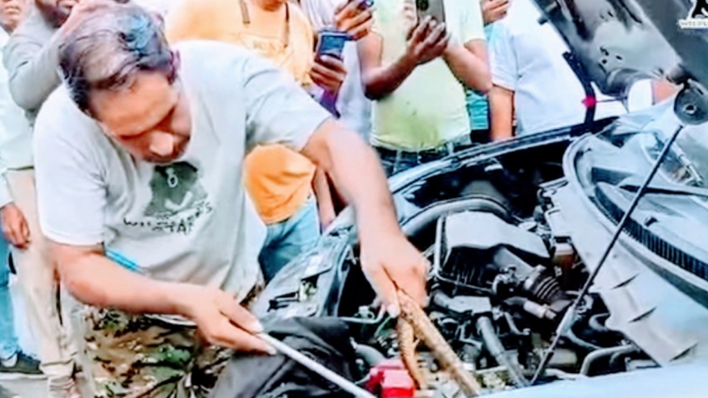 एक कार मालिक के लिए बोनट खोलते समय चौंकाने वाला दृश्य सामने आया, जब उन्होंने गाड़ी के इंजन में पाँच फुट लंबा सांप फंसा देखा। उन्होंने तुरंत सहायता के लिए वाइल्डलाइफ एसओएस की 24 घंटे आपातकालीन हेल्पलाइन (+91 9917109666) से संपर्क किया।