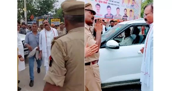 रविवार को फतेहपुरसीकरी लोकसभा क्षेत्र में रक्षामंत्री राजनाथ सिंह की जनसभा थी। जनसभा से कुछ दूरी पर पुलिस अधिकारियों की विशेष ड्यूटी लगाई गई थी। इंस्पेक्टर उत्तम चंद पटेल भी वीआईपी ड्यूटी पर थे। इसी दौरान भाजपा कार्यकर्ता अपने वाहनों को जनसभा की ओर ले जा रहे थे। मौके पर तैनात इंस्पेक्टर उत्तम चंद पटेल ने उन्हें रोक दिया।