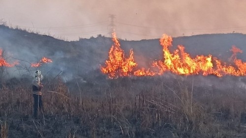 आगरा। फतेहाबाद ब्लॉक के अंतर्गत गांव रिहावली के पास स्थित जंगलों में गुरुवार को अज्ञात कारणों से भीषण आग लग गई। सूखे पत्तों और झाड़ियों के कारण आग ने देखते ही देखते विकराल रूप धारण कर लिया, जिससे आसमान में धुएं के काले गुबार छा गए। धुएं का गुबार देखकर आसपास के गाँवों में हड़कंप मच गया और लोग अनहोनी की आशंका में घरों से बाहर निकल आए।