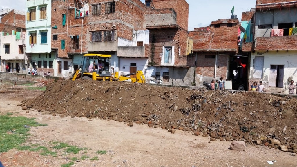आगरा। आगरा कॉलेज प्रशासन ने नालबंद चौराहे से सटी अपनी भूमि पर सोमवार को पुलिस और पीएसी की मौजूदगी में कब्जा लेना शुरू कर दिया। यहां लगभग 340 बीघा भूमि पर जेसीबी से खुदाई कराकर बाउंड्री वॉल निर्माण कार्य शुरू करा दिया गया। तीन जेसीबी मशीनों द्वारा बाउंड्री वॉल की नींव खोदने का कार्य किया गया।