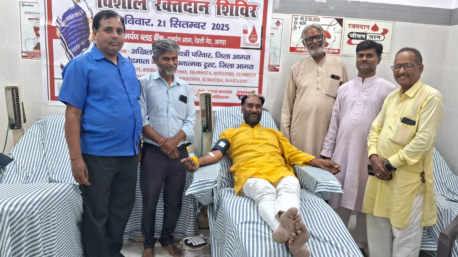 आगरा। अखिल विश्व गायत्री परिवार द्वारा जगत वन्द्य परम वन्दनीया माता भगवती देवी शर्मा का जन्म शताब्दी वर्ष 2026 सम्पूर्ण देश विदेश में मनाया जायेगा। इसी संदर्भ में माता भगवती देवी शर्मा के 99वें जन्म दिवस पर 2 दिवसीय कार्यक्रम का आयोजन आगरा जिला में किया गया। जिसके प्रथम दिवस 20 सितम्बर 2025 को ‘‘एक दिवसीय शक्ति संवर्धन सामूहिक अखण्ड गायत्री महामंत्र जप’’ का आयोजन जिले के 15 प्रज्ञा संस्थानों में आयोजित किया गया। द्वितीय दिवस 21 सितम्बर को ‘‘पीड़ा निवारण रक्तदान शिविर’’ का आयोजन समर्पण ब्लड बैंक, दिल्ली गेट पर किया गया।