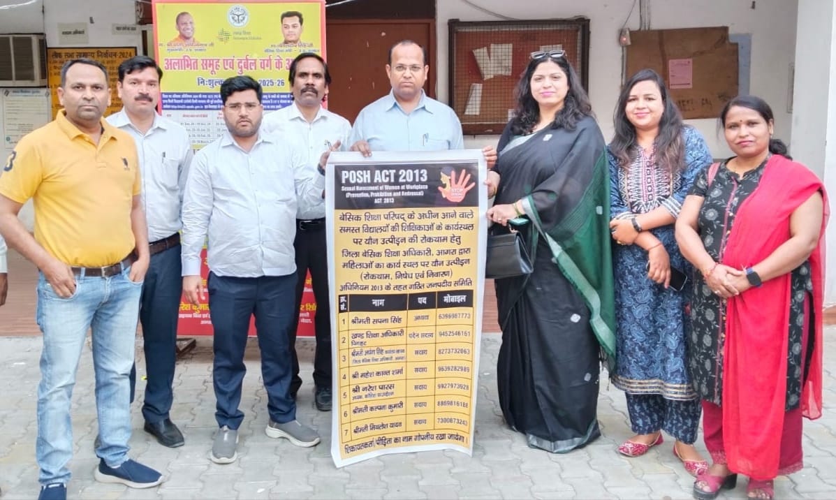 आगरा: स्कूलों में शिक्षिकाओं के साथ होने वाले यौन उत्पीड़न की घटनाओं पर अब लगाम लगेगी। सूचना पर तत्काल संज्ञान लिया जाएगा। सुप्रीम कोर्ट के आदेश के अनुपालन में तथा कार्यस्थल पर यौन उत्पीड़न रोकथाम अधिनियम 2013 के तहत बेसिक शिक्षा अधिकारी द्वारा जनपद स्तरीय सात सदस्यीय कमेटी का गठन किया गया है। पोस्टर का विमोचन शनिवार को बीएसए कार्यालय में किया गया।