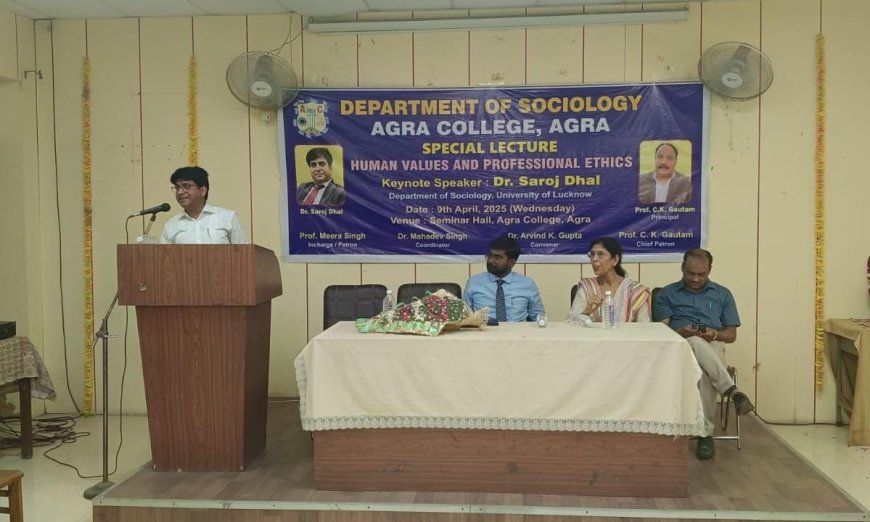 आगरा। आगरा कॉलेज के समाजशास्त्र विभाग द्वारा ‘ह्यूमन वैल्यूज़ एंड प्रोफेशनल एथिक्स’ विषय पर आयोजित विशेष व्याख्यान में लखनऊ विवि के समाजशास्त्र विभाग के डॉ. सरोज ढल ने कहा कि पर्यावरण और समाज व्यक्ति से परे हैं।
