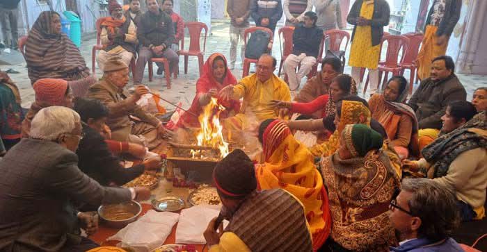 अतुलित बलधामं श्रीहनुमान जी को नमन करते हुए वजीरपुरा स्थित प्राचीन सीताराम मंदिर में श्रीराम मंदिर प्राण प्रतिष्ठा की वर्षगांठ धूमधाम के साथ मनायी गयी। शनिवार को अयोध्या नगरी में धूम मची थी तो आगरा नगर में भी सनातन काे समर्पित उत्साह कम न था। श्रीराम मंदिर प्राण प्रतिष्ठा की प्रथम वर्षगांठ पर भव्य और दिव्य आयोजन हुए। सीताराम मंदिर में मां पीताम्बरा सेवा समिति द्वारा 21 हनुमान चालीसा पाठ द्वारा महायज्ञ किया गया। महायज्ञ में सैंकड़ों श्रद्धालुओं ने आहुतियां दीं। मुख्य यजमान पुरुषोत्तम अग्रवाल- राज अग्रवाल और डॉ संजीव नेहरू- निशि नेहरू थे।