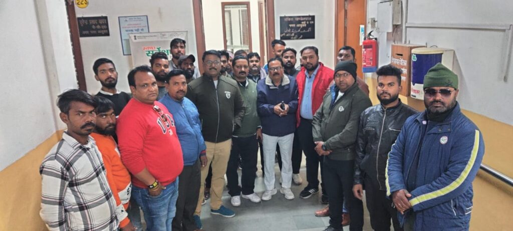 आगरा:- 4 फरवरी को उत्तर प्रदेश स्थानीय निकाय कर्मचारी महासंघ आगरा की एक बैठक कल दिनांक 3 फरवरी को बसपा पार्षदों द्वारा बिना किसी नोटिस के नगर आयुक्त अंकित खण्डेलवाल के आवास पर धरना प्रदर्शन करने के खिलाफ आयोजित की बैठक में विनोद इलाहाबादी मोहन गुलज़ार राजकुमार विद्यार्थी राकेश चौधरी मनीष चौहान अमित सत्यार्थी विशाल चौहान आदि नेताओं ने अपने संबोधन में बसपाई पार्षदों का कड़ाई से विरोध किया ।