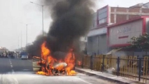 प्रत्यक्षदर्शियों ने बताया कि कार का आगे वाला टायर अचानक गर्म होकर धधकने लगा। कुछ ही सेकंड में आग ने इंजन और पूरी बॉडी को अपनी चपेट में ले लिया। कार देखते ही देखते आग का गोला बन गई। इससे हाईवे पर अफरा-तफरी मच गई और कुछ देर के लिए यातायात भी प्रभावित हुआ।