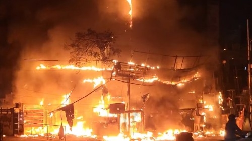 आगरा। कोठी मीना बाजार के निकट न्यू शाहगंज रोड पर स्थित सत्तो लाला फूड कोर्ट में रविवार रात भीषण आग लगने से इलाके में हड़कंप मच गया। आग इतनी तेज थी कि फूड कोर्ट और उससे जुड़े रेस्टोरेंट का बड़ा हिस्सा देखते ही देखते धू-धू कर जल उठा। मौके पर मौजूद लोगों में अफरा-तफरी मच गई और आसपास के दुकानदारों में भी दहशत फैल गई।