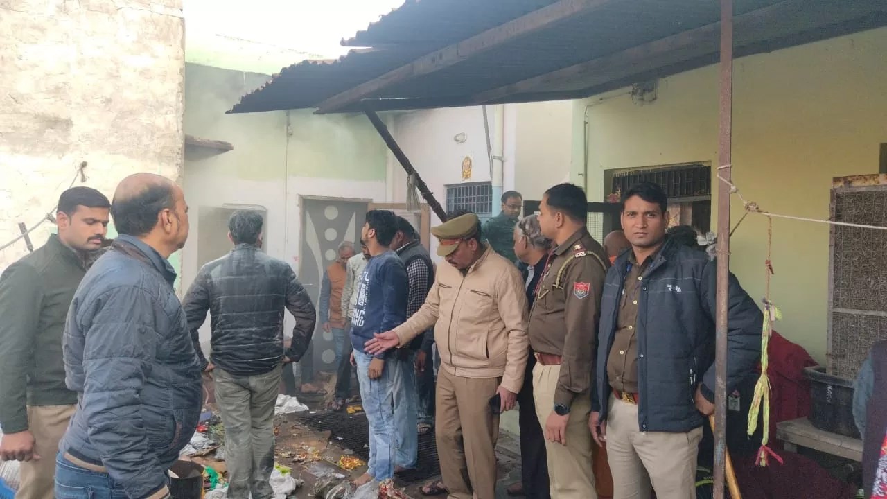 मनकामेश्वर गली में गंगाजी मंदिर मार्केट की चौथी मंजिल पर पंकज मिश्रा और मयंक मिश्रा का पूजा सामग्री का गोदाम है। यहां भगवान की मूर्तियां, रुई बत्ती, पोशाक और अन्य सामग्री रखी थीं।