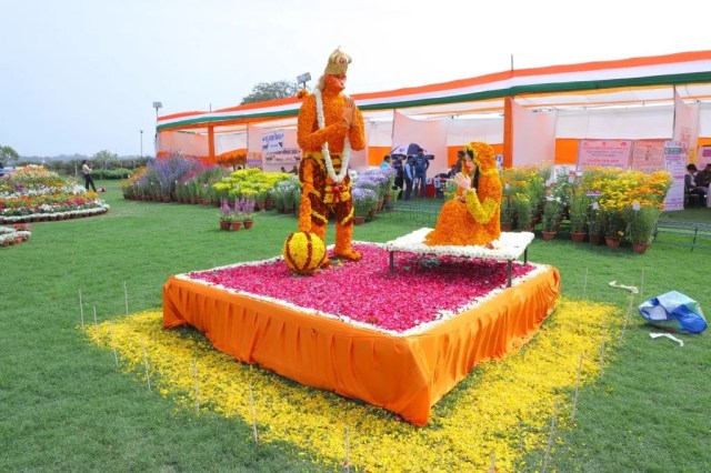आगरा। राजकीय उद्यान ताज व्यू गार्डन, आगरा प्रांगण में आयोजित होने वाली दो दिवसीय मण्डलीय फल, शाकभाजी एवं पुष्प प्रदर्शनी का शुभारम्भ आज शनिवार को श्रीमती रितु माहेश्वरी, आयुक्त आगरा मण्डल, आगरा द्वारा मुख्य विकास अधिकारी आगरा के साथ किया गया। इसी के साथ ही प्रदर्शनी जनसामान्य के अवलोकन के लिए खोल दी गई। मंडलायुक्त ने प्रदर्शनी का अवलोकन किया और मंडल से आये कृषक प्रतिभागियों द्वारा लगाई गई स्टालों पर विभिन्न प्रजाति के फूलों और सब्जियों को देखा। इसी के साथ ही विभिन्न संस्थानों द्वारा विकसित नवीनतम कृषि उत्पादन तकनीकी यथा गमलों से शाकभाजी का उत्पादन तथा आधुनिक प्रसंस्करण विधियों का भी अवलोकन भी किया। बीच मैदान पर फूलों और सब्जियों से सीता माता को हाथ जोड़ते हुए हनुमान, पक्षी गरुड एवं मोर, मगरमच्छ, कछुआ, आगरा मेट्रो और आई लव आगरा सेल्फी पॉइंट इत्यादि सुंदर आकृतियों में सजाया गया।