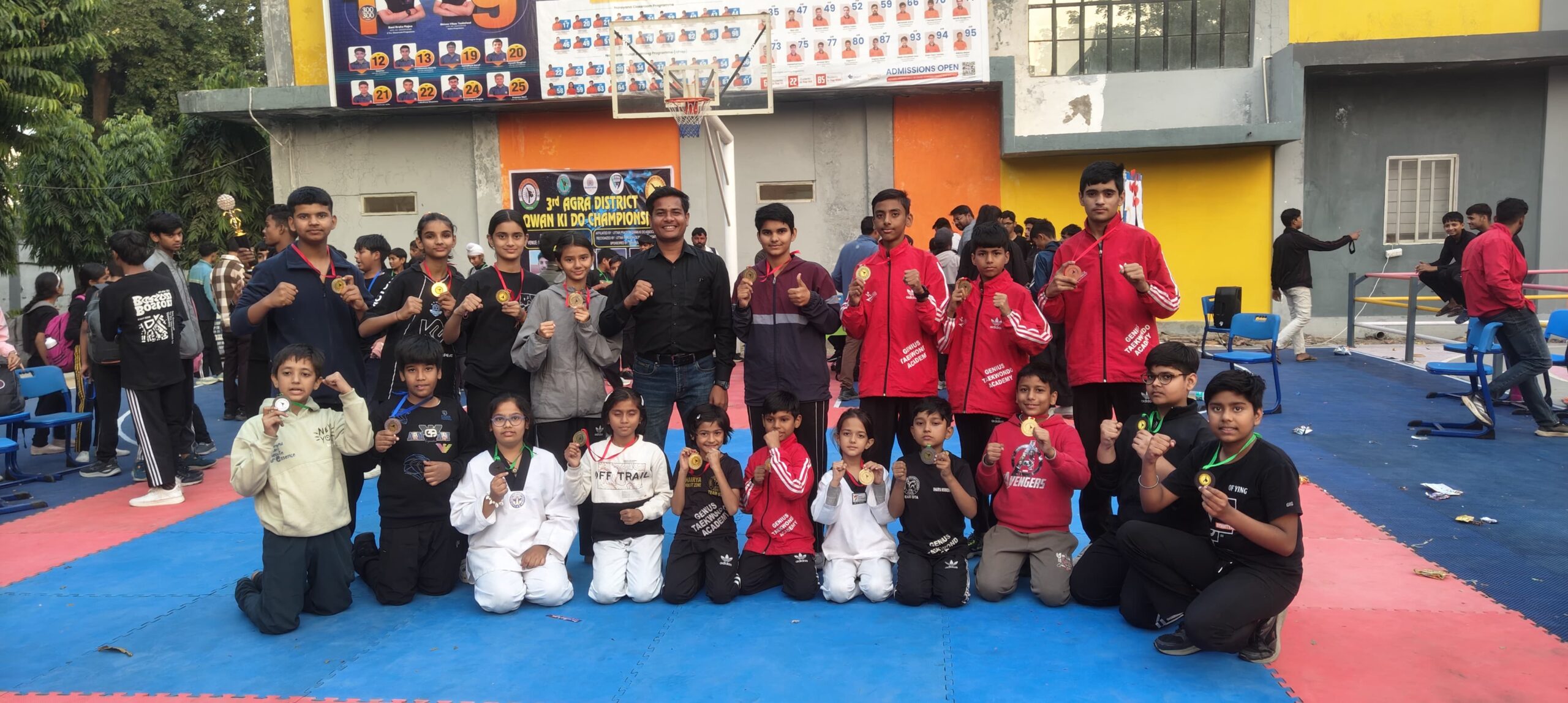 आगरा। नारायण ए टेक्नो स्कूल के मैदान में आयोजित तृतीय जिला स्तरीय क्वान की डो प्रतियोगिता में जीनियस ताइक्वांडो अकेडमी के खिलाड़ियों ने शानदार प्रदर्शन करते हुए कई पदक अपने नाम किए। प्रतियोगिता में विभिन्न आयु वर्गों के प्रतिभागियों ने बेहतरीन तकनीक, संतुलन और कौशल का प्रदर्शन कर दर्शकों व निर्णायकों को प्रभावित किया।