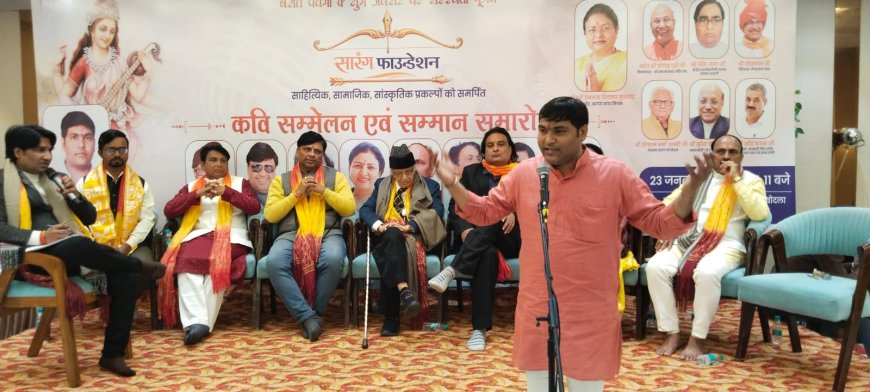 आगरा। बसंत पंचमी के पावन पर्व पर साहित्य, संस्कृति और सामाजिक चेतना को समर्पित सारंग फाउंडेशन का औपचारिक शुभारंभ शुक्रवार को सिकंदरा–बोदला रोड स्थित द नंबरदार्स बैंक्विट में गरिमामय वातावरण के बीच हुआ। सरस्वती पूजन, कवि सम्मेलन और साहित्यकारों के सम्मान समारोह के साथ शुरू हुए इस आयोजन में पूरा सभागार काव्य-रस, वैचारिक ऊर्जा और सांस्कृतिक चेतना से भर उठा।