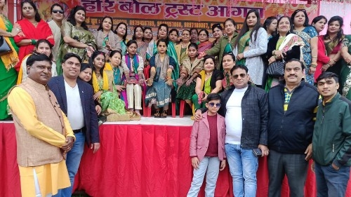आगरा। हरि बोल ट्रस्ट, आगरा द्वारा आयोजित 11वें सामूहिक एकादशी उद्यापन एवं सर्वजातीय सामूहिक विवाह समारोह की रस्मों का शुभारंभ बुधवार को एकलव्य वाटिका, मनोहरपुर, बलकेश्वर रोड पर भव्य रूप से हुआ। तीन दिवसीय इस आयोजन के तहत 11 जोड़ों का सामूहिक विवाह संपन्न कराया जाएगा। पहले दिन मेहंदी उत्सव, महिला संगीत और बच्चों के सांस्कृतिक कार्यक्रमों ने माहौल को उल्लासपूर्ण बना दिया।
