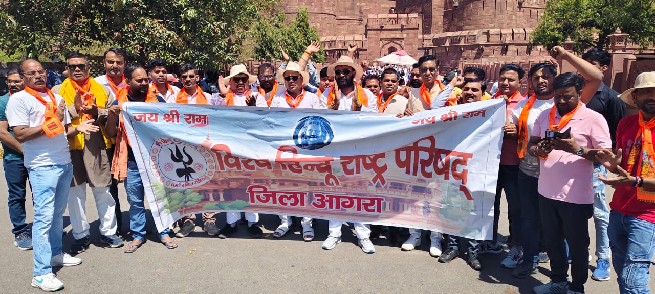 आगरा: विश्व हिन्दू राष्ट्र परिषद द्वारा चैत्र प्रतिपदा भारतीय नववर्ष के उपलक्ष्य में प्रदेश अध्यक्ष पंडित राजकुमार त्रिवेदी जी के नेतृत्व में आगरा लालकिले के गेट पर संगठन के सदस्यों द्वारा देशी विदेशी पर्यटकों को चंदन लगाकर भगवा राम नाम का पटका पहनाकर भारतीय नववर्ष की शुभकामनाएं दी और जोरदार नारेबाजी की गई.