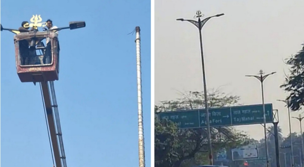 ताजमहल और आगरा किले के बीच यमुना किनारा रोड पर स्ट्रीट लाइटों पर इसकी शुरुआत गई है। इन मुगलिया स्मारकों के बीच सड़क पर भगवान शंकर का त्रिशूल दिखाई देगा। हाथीघाट से श्मशान घाट तिराहे के बीच यमुना किनारा रोड पर ये त्रिशूल लगाए जा रहे हैं। स्ट्रीट लाइटों के ऊपर गोल्डन कलर के ये त्रिशूल दूर से ही नजर आ रहे हैं। ट्रायल के रूप में इन्हें यहां लगाया जा रहा है।