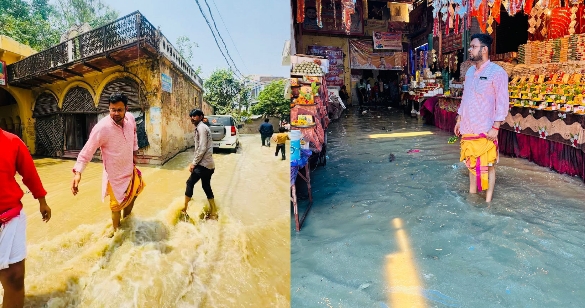 पाइपलाइन फटने से आसपास 5-5 फीट पानी भर गया।मंदिर के मुख्य द्वार तक पानी ही पानी दिख रहा था। आसपास के घरों के अंदर पानी चला गया। लोगों के बेड और अलमारी डूब गए। सामान खराब हो गया। पानी का बहाव इतना ज्यादा था कि मंदिर के मेन गेट तक पानी आ गया।