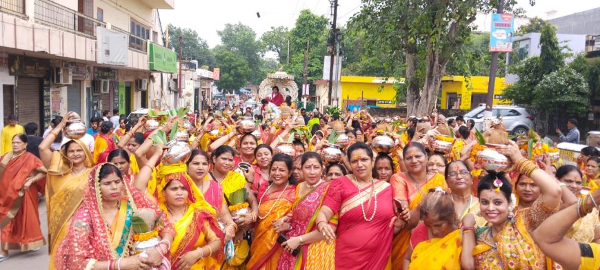 आगरा। विश्व कल्याण मिशन ट्रस्ट आगरा इकाई द्वारा आयोजित श्रीमद्भागवत कथा महोत्सव की शुरुआत गुरुवार को महालक्ष्मी मंदिर बल्केश्वर से हुई। इस अवसर पर विशाल मंगल कलश यात्रा निकाली गई, जिसमें 3100 से अधिक माता-बहनें मंगल कलश लेकर शामिल हुईं। राष्ट्रीय संत चिन्मयानंद बापू सुसज्जित बग्घी पर विराजमान होकर भक्तों का मार्गदर्शन कर रहे थे। पूरा बल्केश्वर क्षेत्र राधे-राधे के जयकारों से गूंज उठा और मानो आस्था का सैलाब उमड़ पड़ा।