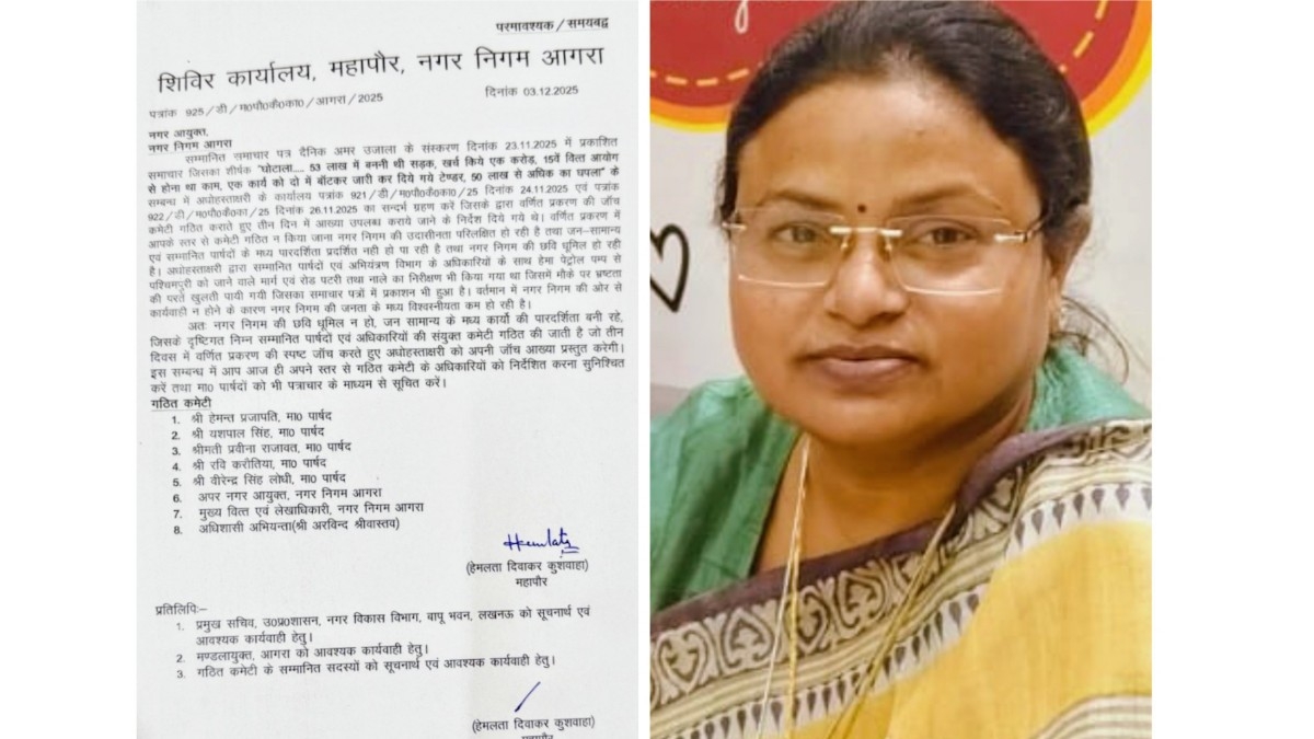 आगरा। नगर निगम द्वारा हेमा पेट्रोल पंप से पश्चिमपुरी चौराहे तक कराए गए सड़क निर्माण में सामने आए कथित घोटाले के मामले ने बुधवार को नया मोड़ ले लिया। अधिकारियों की चुप्पी और पक्ष-विपक्ष दोनों के पार्षदों की लगातार उठती आवाज़ के बीच महापौर हेमलता दिवाकर कुशवाह ने स्वयं जांच कमेटी गठित कर दी है। यह कदम नगर निगम में बढ़ती नाराज़गी और जनप्रतिनिधियों के दबाव के बाद उठाया गया है।