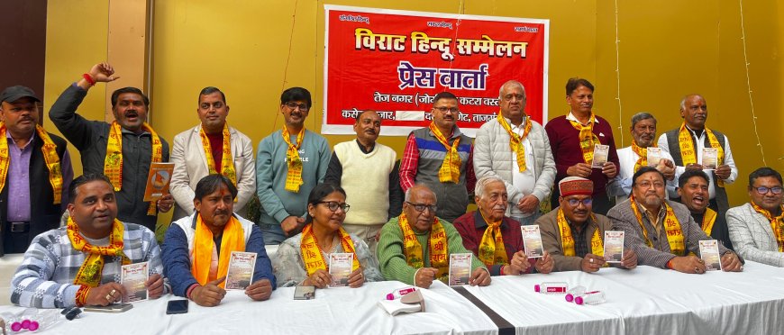 आगरा: ताज नगरी के ताजगंज क्षेत्र में धर्म, संस्कृति और सामाजिक समरसता को सुदृढ़ करने के उद्देश्य से आयोजित होने जा रहे ‘विराट हिंदू सम्मेलन’ का गुरुवार को पोस्टर विमोचन संपन्न हुआ। ताज पश्चिम गेट स्थित होटल सिद्धार्थ में सकल हिंदू समाज के प्रतिनिधियों ने विधिवत रूप से इस कार्यक्रम का आगाज किया।