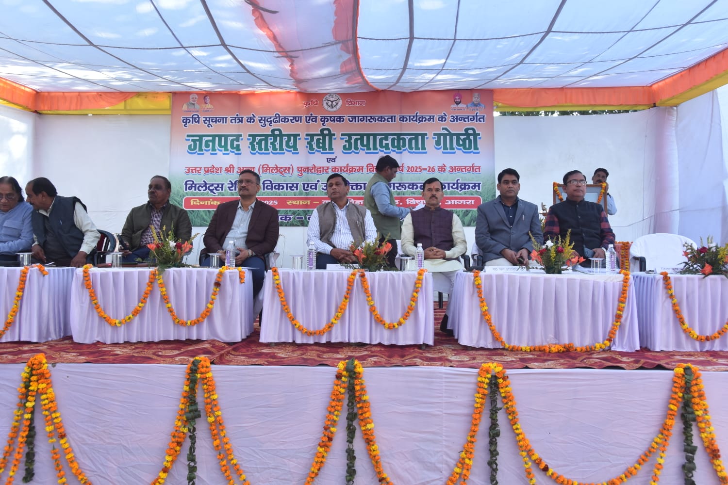 आगरा। कृषि सूचना तंत्र के सुदृढ़ीकरण एवं कृषक जागरूकता कार्यक्रम के तहत 4 दिसंबर 2025 को कृषि विज्ञान केन्द्र, बिचपुरी में जनपद स्तरीय रबी उत्पादकता गोष्ठी–2025 और उत्तर प्रदेश श्री अन्न (मिलेट्स) पुनरोद्वार कार्यक्रम के अंतर्गत मिलेट्स रेसिपी विकास एवं उपभोक्ता जागरूकता कार्यक्रम का आयोजन किया गया। कार्यक्रम में जनपद भर से आए किसानों, कृषि विशेषज्ञों और विभिन्न विभागों के अधिकारियों ने भाग लिया।