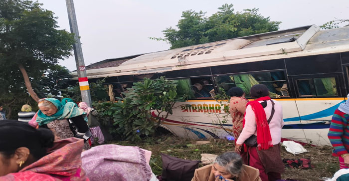 अयोध्या से लौटकर आते समय सुबह इनर रिंग रोड का टोल प्लाजा पार करने के बाद अचानक बस अनियंत्रित हो गई और डिवाइडर तोड़ते हुए नीचे खाई में उतर गई। बस में सभी लोग सो रहे थे। तभी अचानक तेज झटका लगा। किसी को कुछ समझ नहीं आया। सभी लोग बस रुकते ही नीचे उतरने लगे। कई यात्रियों को चोट आई हैं। दो महिलाओं को गंभीर चोट लगी। उन्हें अस्पताल में भर्ती कराया गया है। सूचना पर पुलिस भी मौके पर पहुंच गई।