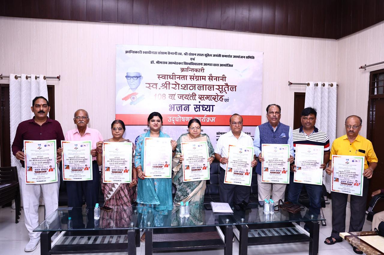 आगरा। स्वाधीनता संग्राम में अपने बलिदानों से इस देश को आज़ादी दिलाने वाले नायकों को भुलाया नहीं जा सकता। इनकी स्मृतियों को ताजा करने का काम स्वाधीनता संग्राम के नायक स्व. श्री रोशन लाल सूतैल जयंती समारोह आयोजन समिति एवं डा. भीमराव आम्बेडकर विश्वविद्यालय, सामुदायिक रेडियो 90.4 आगरा की आवाज द्वारा आयोजित होने जा रहे क्रान्तिकारी स्व. श्री रोशनलाल सूतैल की 108 वीं जयंती समारोह के माध्यम से किया जाएगा। इस बात की जानकारी समारोह के उद्घोषणा कार्यक्रम के मौके पर एफमेक अध्यक्ष पूरन डावर ने दी साथ ही उन्होंने कहा कि यह आयोजन गुरुवार 25 जुलाई को सायं 4 बजे से संस्कृति भवन ऑडिटोरियम में किया जाएगा।