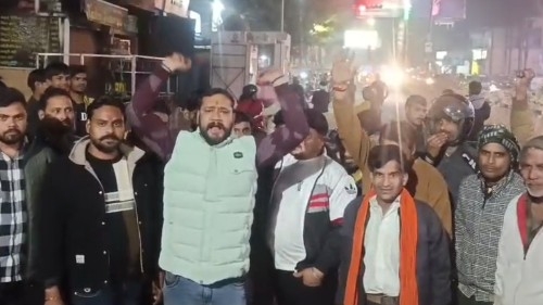 आगरा। थाना जगदीशपुरा के बोदला चौकी क्षेत्र स्थित मारुति स्टेट (बोदला रोड) में मंदिर के नजदीक संचालित मीट की दुकानों और रेस्टोरेंट को लेकर बुधवार को माहौल गरमा गया। क्षेत्रवासियों के साथ भाजपा कार्यकर्ताओं ने मौके पर पहुंचकर विरोध प्रदर्शन किया और “जय श्रीराम” के नारे लगाते हुए दुकानों को बंद कराने की मांग की।