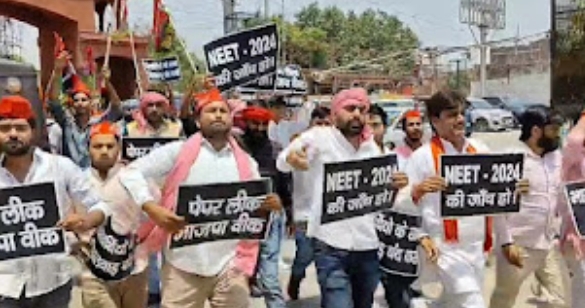 सपाइयों का आरोप था कि नीट की परीक्षा परिणाम ने साफ कर दिया है कि एक विशेष तबके के लोगों को लाभ पहुंचाया जा रहा है और जो बच्चे अपनी मेहनत से सफलता हासिल कर रहे हैं उन्हें उनके परीक्षा परिणाम मेहनत के अनुसार नहीं मिल रहे हैं