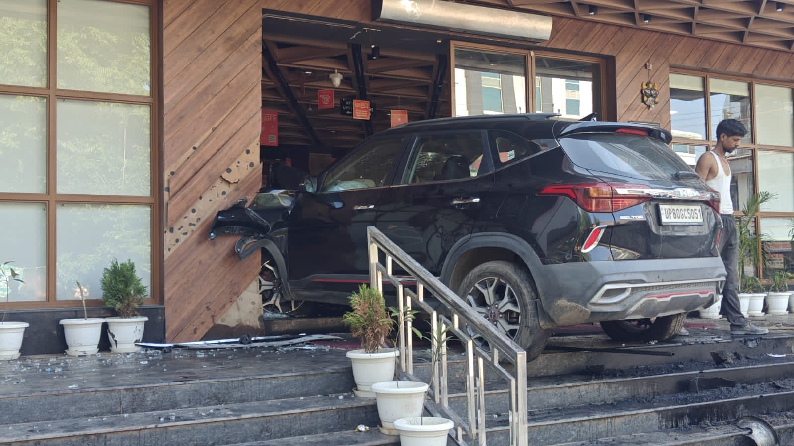 कुछ लोगों का कहना है कि कार चला रहा शख्स नशे में था। कुछ लोगों का कहना है कि कार की स्पीड बहुत ज्यादा थी। शायद इसी वजह से कार चला रहे शख्स का उस पर कोई नियंत्रण नहीं रहा। कार रेस्टोरेंट के गेट से टकराई, इसके बाद बंद हो गई। एयर बैग खुलने से कार सवार की जान बच गई लेकिन उसे चोट आई है।