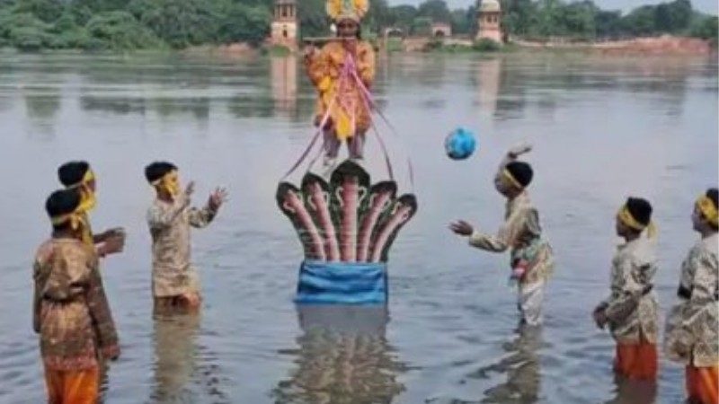 राष्ट्रीय शांति सद्भावना मिशन द्वारा आयोजित कार्यक्रम में वासुदेव द्वारा बाल कृष्ण को अपने शीश पर रखकर यमुना पार कराने का दृश्य प्रस्तुत किया गया। भक्तों ने भाव-विभोर होकर इस अध्यात्म से भरे पल का आनंद लिया और घाट पर गूंज उठे जयकारे।