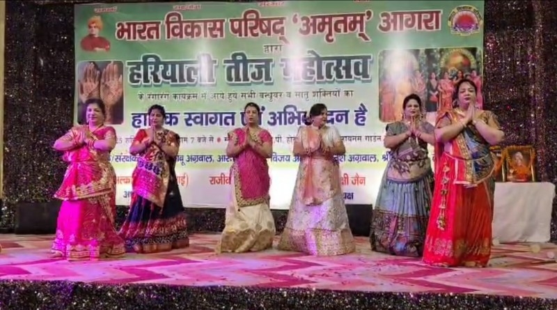 आगरा। सावन की रिमझिम फुहारों और मल्हारों के बीच भारत विकास परिषद अमृतम शाखा द्वारा फतेहाबाद रोड स्थित वेदांतम में हरियाली तीज महोत्सव का भव्य आयोजन किया गया। कार्यक्रम की शुरुआत शिव-पार्वती के स्वरूप को झूला झुलाकर की गई, जिससे पूरा वातावरण भक्तिभाव और पारंपरिक उल्लास से सराबोर हो गया।
