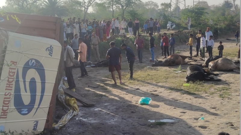 लोगों ने पाया कि पलटे कंटेनर से ले जाये जा रहे कुल 14 गौवंश में से नौ की मौत हो चुकी है जबकि पांच जीवित अवस्था में हैं। सूचना पाकर पुलिस भी दौड़ी-दौड़ी पहुंची और मौका मुआयना करने के बाद लोगों को भरोसा दिया कि कंटेनर में गौवंश को लेकर जा रहे तस्करों को जल्द पकड़ लिया जाएगा।