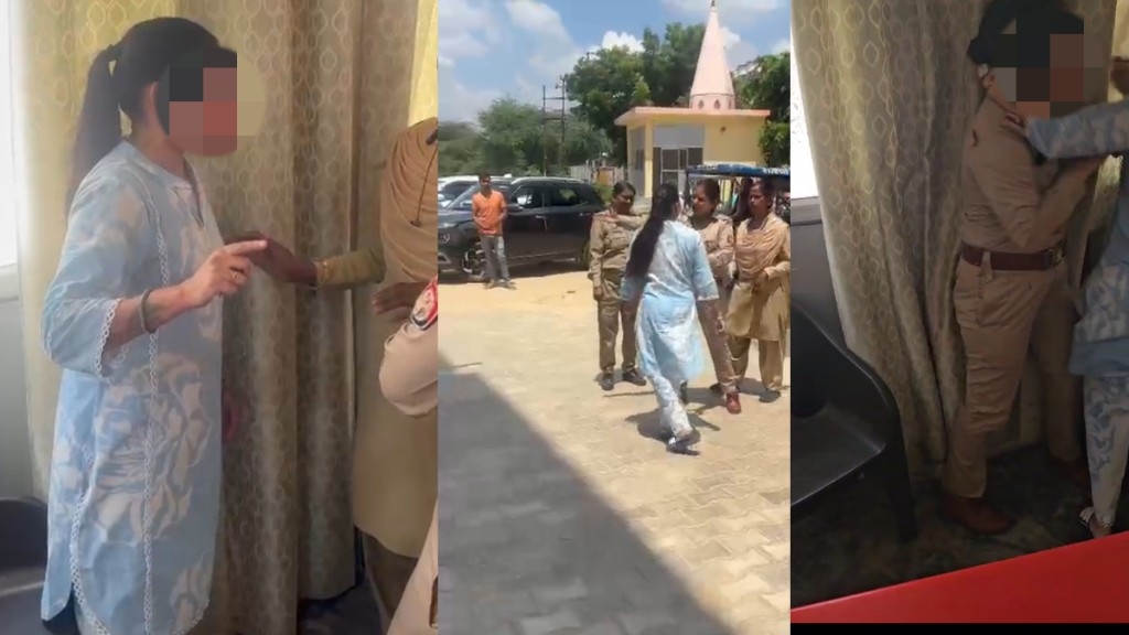 आगरा में महिला ने थाने में घुसकर प्रभारी के साथ कि अभद्रता। देखें लाइव वीडियो