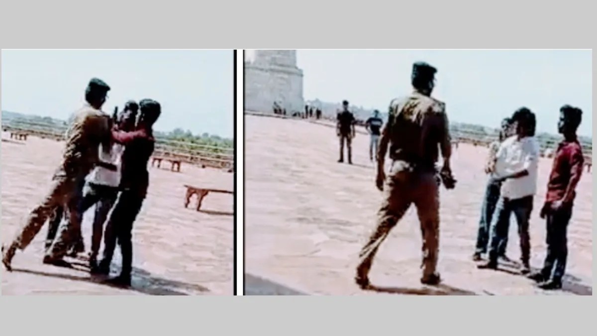 आगरा : ताजमहल फिर सुर्खियों में है। यहां शनिवार को दोपहर में केंद्रीय औद्योगिक सुरक्षा बल (सीआईएसएफ) के जवान ने एक युवती से मारपीट कर दी है। युवतियों का ग्रुप ताजमहल में रील बना रहा था। मना करने पर बहस हुई। उसके बाद जवान ने युवती को धक्का दिया और उसके थप्पड़ मारा। इसका वीडियो सोशल मीडिया पर वायरल हो रहा है।