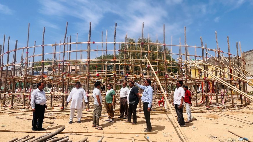 आयोजन समिति के अध्यक्ष विजय सिंह कर्दम ने बताया कि कोलकाता से 80 से अधिक कारीगर भीम नगरी के महल को अंतिम रूप देने में दिनों रात लगे हुए हैं। महल को 60 फीट ऊंचा और 120 फीट चौड़ा बनाया जा रहा है। महल के आगे जमीन से छह फीट ऊंची, 100 फीट लंबी और 50 फीट चौड़ी स्टेज बनाने का निर्णय लिया गया है। भीमनगरी में मुख्य प्रवेश द्वार सांची के स्तूप के रूप में दिखेगा।