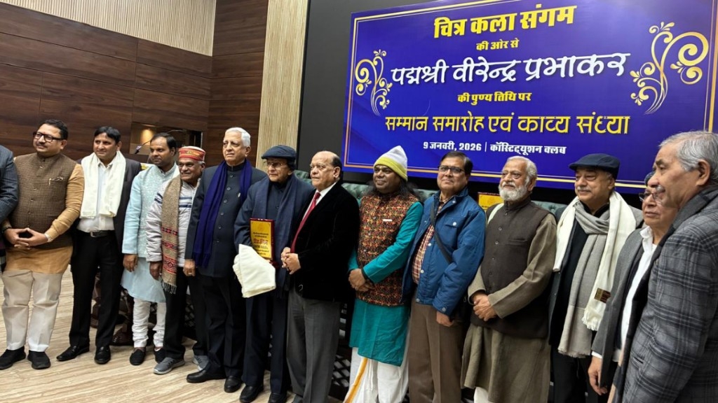 नई दिल्ली। विश्व हिंदी दिवस की पूर्व संध्या पर कांस्टीट्यूशन हॉल, नई दिल्ली में चित्र कला संगम द्वारा आयोजित सम्मान समारोह एवं काव्य संध्या के अवसर पर आगरा के वरिष्ठ कवि अनिल कुमार शर्मा के काव्य लेखन पर आधारित समीक्षात्मक पुस्तक काव्य कसौटी (एक आलोचनात्मक परिदृश्य) का भव्य विमोचन सम्पन्न हुआ। पुस्तक का विमोचन विख्यात हास्य कवि सुरेन्द्र शर्मा तथा संस्था के गणमान्य सदस्यों द्वारा किया गया।