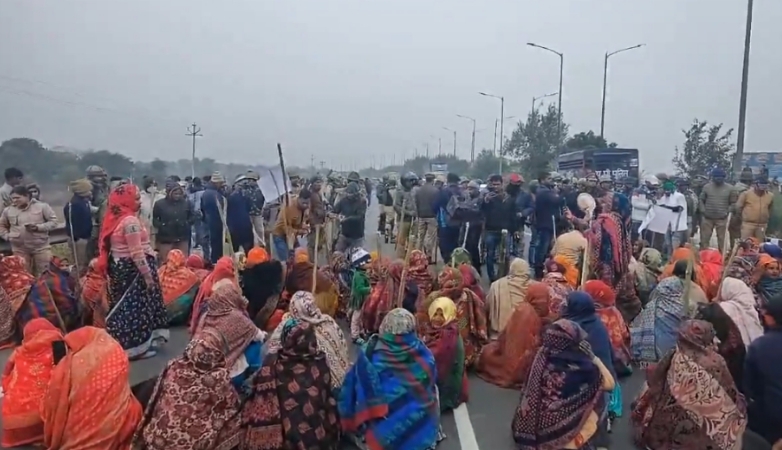 महिलाओं के साथ पहुंचे किसानों ने इनर रिंग रोड की एक लेन बंद की