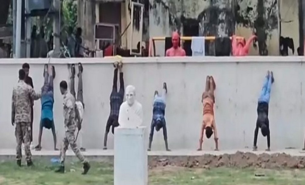 अयोध्या में नगर निगम के प्रवर्तन दल ने शुक्रवार को कुछ सुरक्षाकर्मी पार्क पहुंचे और ठेले लगाने वाले आठ लोगों को पकड़ लिया। सुरक्षाकर्मियों ने इन ठेले वालों को पार्क में लाकर उन्हें कान पकड़कर उठक-बैठक करने को कहा। इसके बाद, उन्हें पार्क की दीवार के पास खड़ा कर दिया गया और डंडे की मदद से उन्हें उल्टा खड़ा किया। यह लोग काफी देर तक सिर नीचे और पैर दीवार के सहारे खड़े रहे।