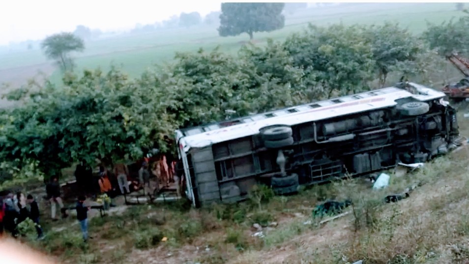 बताया गया है कि मंगलवार की शाम लुधियाना से रवाना हुई स्लीपर कोच बस में 45 यात्री सवार थे। नगला खंगर क्षेत्र में माइलस्टोन संख्या 61.2 किलोमीटर के पास पहुंचते ही बस डीसीएम से टकराने के बाद अनियंत्रित हो गई और रेलिंग तोड़ते हुए नीचे गड्ढे में जा गिरी।