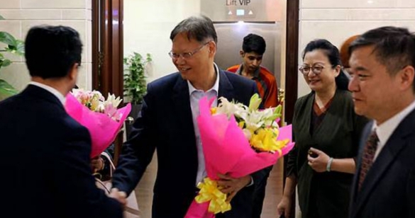 भारत के विदेश मंत्रालय के प्रोटोकॉल डिवीजन के अधिकारियों, चीनी दूतावास के मंत्री मा जिया, मंत्री वांग लेई समेत कई अधिकारियों ने दिल्ली एयरपोर्ट पर चीनी राजनयिक और उनकी पत्नी का स्वागत किया।