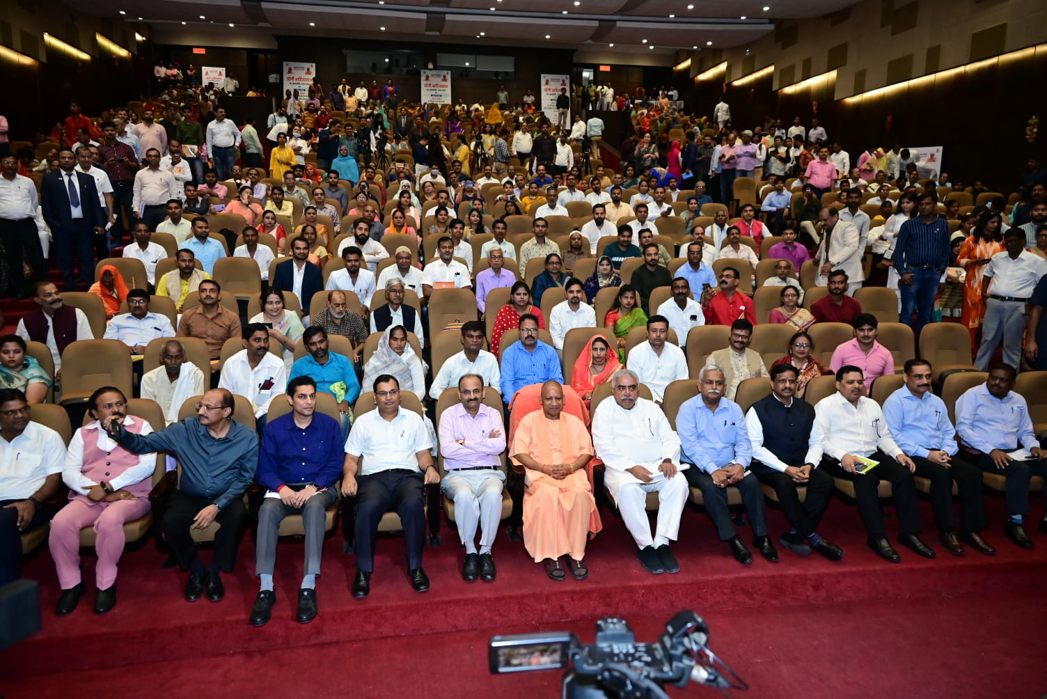 आगरा में सांकेतिक कार्यक्रम में विधायक डा धर्मपाल सिंह और डीएम प्रभु एन सिंह ने स्थानीय उद्यमियों के साथ योजना के शिलापट से पर्दा हटाया।