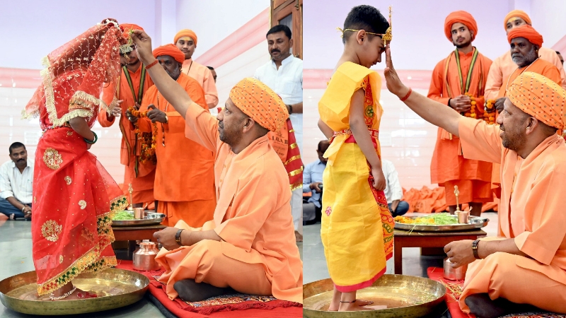 सीएम योगी आदित्यनाथ ने ‘चैत्र नवरात्रि’ की पावन नवमी तिथि के अवसर पर गोरखपुर स्थित गोरखनाथ मंदिर में हवन-पूजन किया। इसके बाद सीएम योगी ने देवी स्वरूपा कन्याओं का पूजन किया एवं प्रसाद ग्रहण कराया। इस अवसर पर उन्होंने कहा कि मेरा सौभाग्य है कि मैंने कन्या पूजन किया। भारतीय संस्कृति में मातृशक्ति के प्रति भक्ति निहित है, और हम इसे नवरात्रि के दौरान देखते हैं।