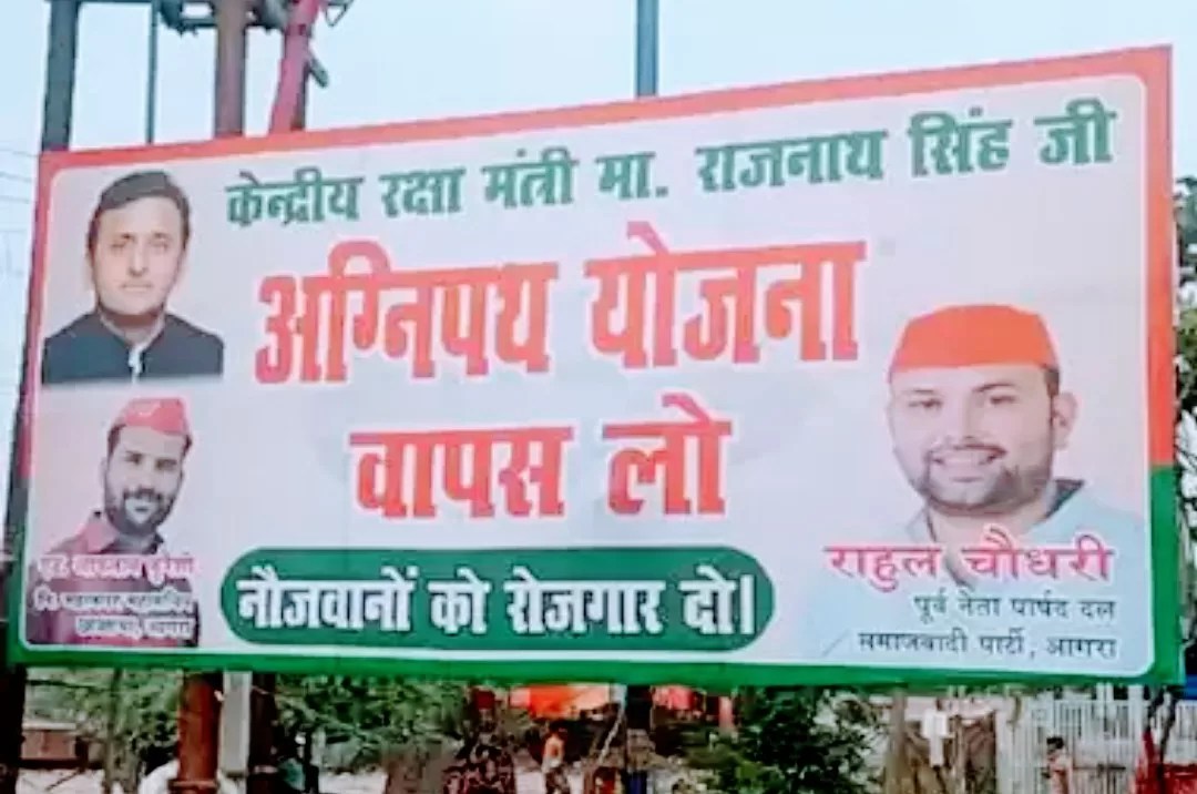 जनसभा के विरोध में शनिवार को समाजवादी पार्टी के कार्यकर्ताओं ने पोस्टर चिपका दिए। पोस्टर में अग्निपथ योजना को वापस लिए जाने की मांग की गई है। ये पोस्टर रक्षामंत्री की जनसभा आयोजन से 200 मीटर की दूरी पर है। जहां प्रशासन ने पार्किंग स्थल बनाया है।