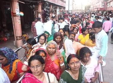 विश्वभूषण मिश्रा ने बताया कि दूसरी लाइन में आने वाले भक्तों को सीढ़ीदार प्लेटफॉर्म बनाकर गर्भगृह के बाहर से झांकी दर्शन कराया जा रहा है। ऐसे में एक समय में एक गेट से दो लाइनों में लगे भक्तों को दर्शन करा दिया जा रहा है।
